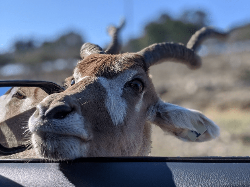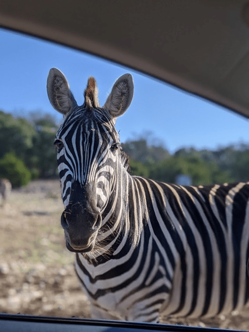 We had a full day of activities in the San Antonio region the next day, and so we got up before 7, ate a breakfast comprised of snacks we brought with us and leftovers from the BBQ, and made our way down South to the Natural Bridge Wildlife Ranch. Having gone to a few zoos in various places around North America and being overall not impressed, this was a place where we marked as optional and almost ended up not going. Luckily, we decided not to skip it, because it was one of the more unique experiences we’d had for a long time. The Wildlife Ranch is a large safari, home to many non-predatory African animals, such as gazels, zebras, ostriches, and antelopes. You pay at the gate for the headcount in your car and are given a bag of feed for the animals. Afterwards you drive in following a predetermined trail and can get up close with all the animals roaming freely in the area. Exiting the vehicle is prohibited, but we rolled down the windows and in many cases, the animals would stick their heads in to the car and our faces would be just a few inches from theirs. In general, most of the animals were reasonably docile and would slowly approach our car and wait patiently to see whether they’d get any treats. That said, we also didn’t take any chances with some of the larger animals which had the horns and the power to likely trigger an airbag with a moderate headbutt. Of particular interest were the ostriches and the zebras – one ostrich pecked our car and the zebras would flap their lips at us. Fortunately, the ostriches didn’t have a hard enough beak to scratch or dent the car, and the zebras didn’t spit…