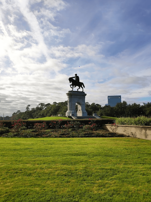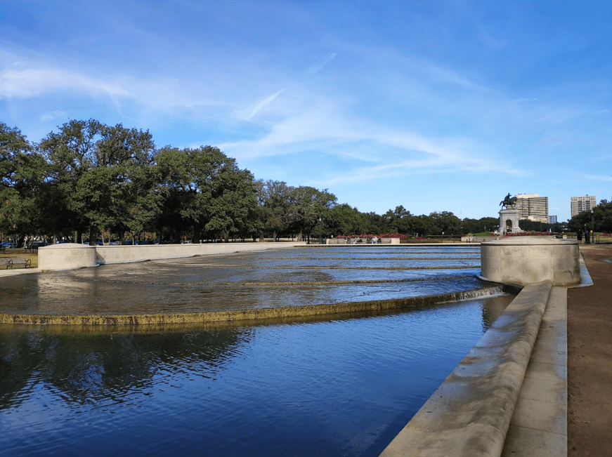 Our third and final day in Houston was spent going around the city and visiting local attractions. We went to Hermann Park, an urban park right next to Rice University, in the morning and found it to be one of the nicest urban parks we’d seen so far in the US. The main entrance to the park is located directly behind a large roundabout whose center had a huge fountain. As soon as we entered the park, we had a beautiful view of the Sam Houston statue, behind which lay a large reflection pool and a memorial obelisk. Large open areas grassy areas are mixed in with lush greenery, a lake, and several different museums. Further into the park was a large children’s play area and zoo that was closed the day we visited.