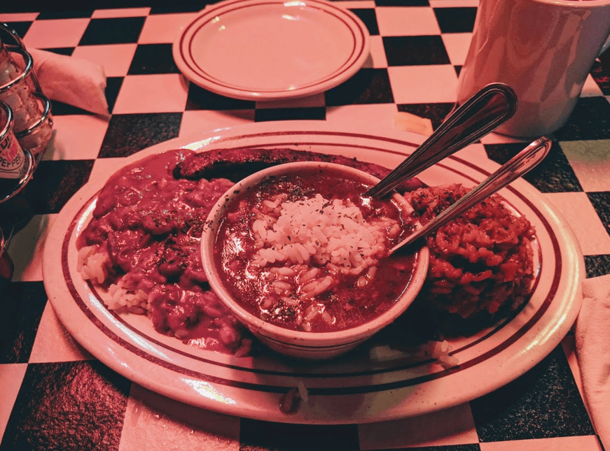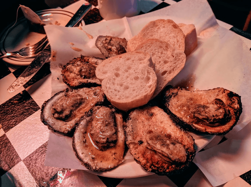 In the evening, we made our way back up to the French Quarter for dinner at Acme Oyster House, a place famous for its char-grilled oysters and various other seafood dishes. Acme is a super popular place, and the lines for lunch and dinner would often reach 1.5h long. Luckly, we arrived relatively early and waited only around 40 minutes to get inside. We got a half dozen char-grilled oysters and the New Orleans Medley. The medley was especially appealing because it contained a small amount of most of the food that NOLA is famous for, such as gumbo, jambalaya, red beans & rice and grilled smoked sausage. The food was good, but like Café du Monde, it was not worth the wait, especially for us, because we’re less into “ambience” than we are into food. The char-grilled oysters were also not as good as we feel they could’ve been. Because they’re so popular, they get churned out with more attention to efficiency than quality, so some of them had a little too much char and not quite enough oyster. The medley was pretty really good though. Now if only they had live jazz as well.