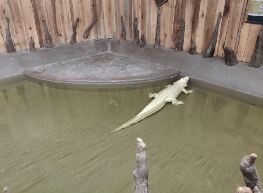 The place had a gift shop that kept a big albino alligator, which is an alligator with all white skin, from head to tail. They kept it in a very small pool, and it wasn’t moving, so it sort of looked like a larger version of a rubber bath toy.