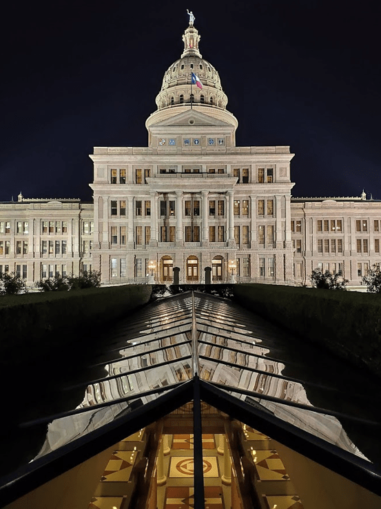 Having worked out our legal issues, we drove to the Texas Capitol. By the time we arrived, it was already dark, and we weren’t able to see the campus and statues as clearly as we would’ve had we arrived earlier. Nonetheless, the architecture and environment were beautiful, and looked just as nice as it did in the pictures we saw prior to going. We went inside, and stopped for a couple of pictures before heading to our next stop – FOOD!